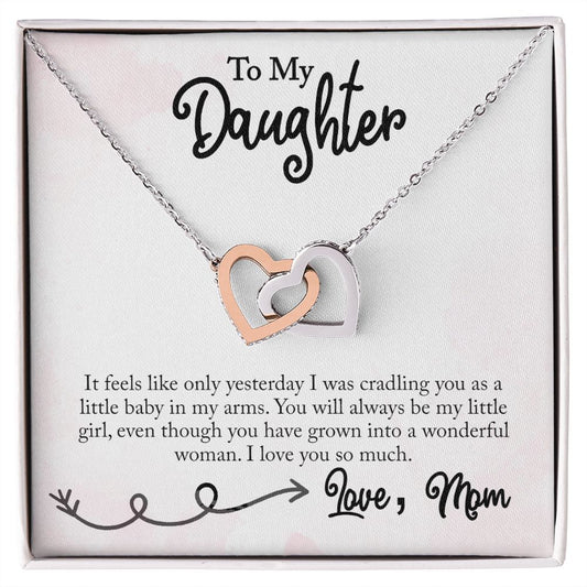 Show her how much you care with this personalized interlocking hearts necklace. It comes in a luxury box with an LED light to illuminate the necklace and the heartfelt message which is customized with both your names.