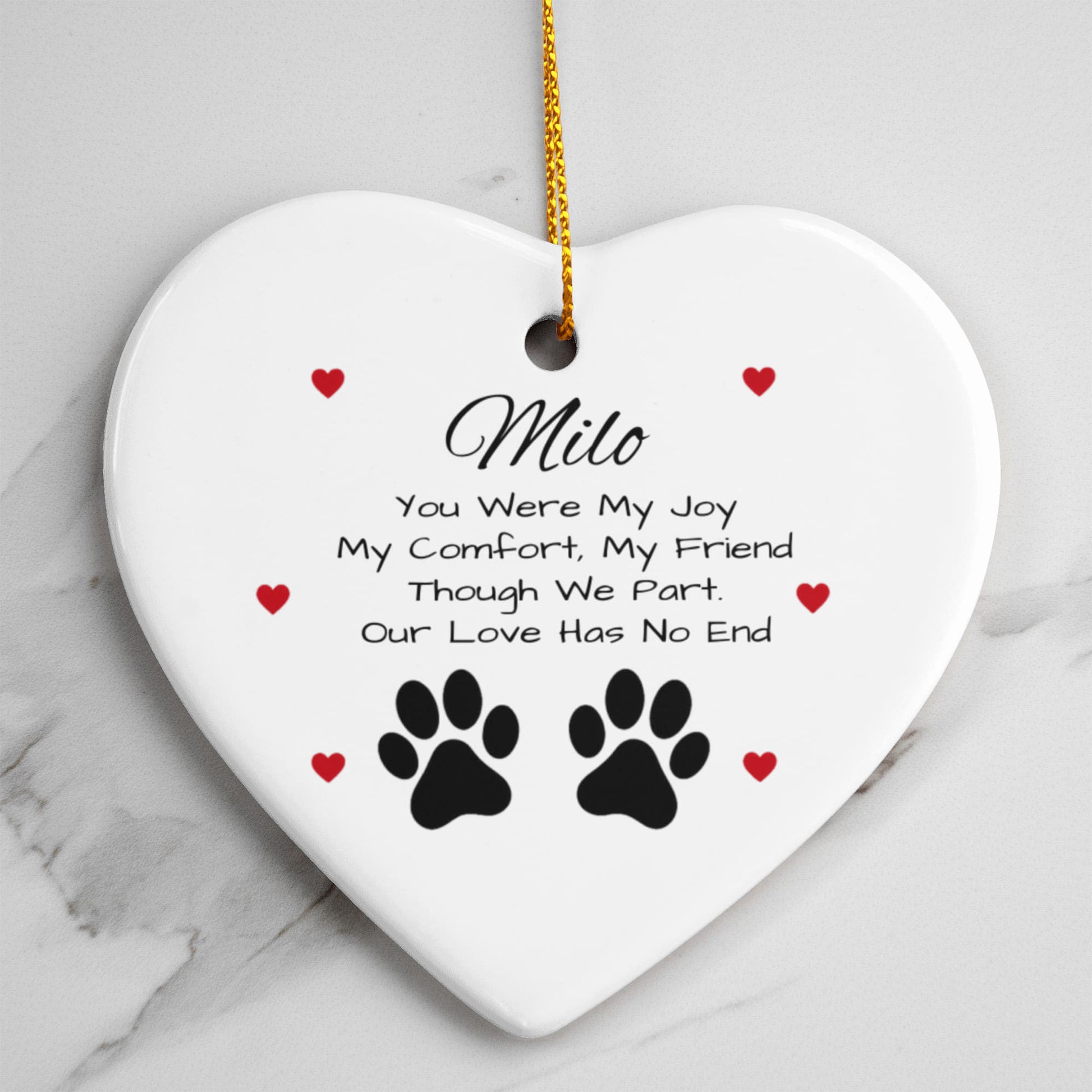 Personalized Pet Memorial Ornament – Custom Name | Heart-Shaped Ceramic Keepsake with Poem & Paw Prints
