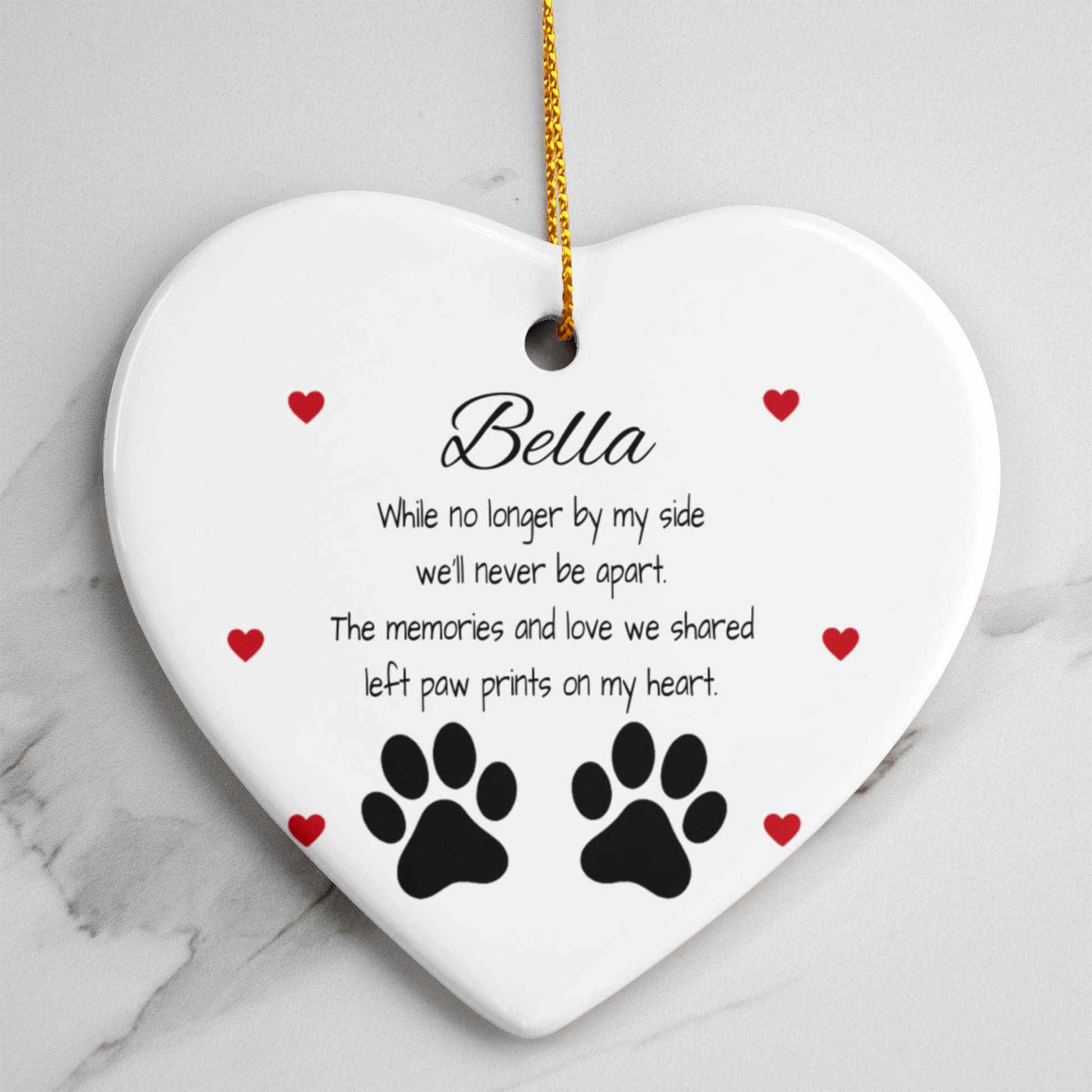 Custom Pet Memorial Ornament – Personalized Heart-Shaped Ceramic Keepsake with Poem & Paw Prints
