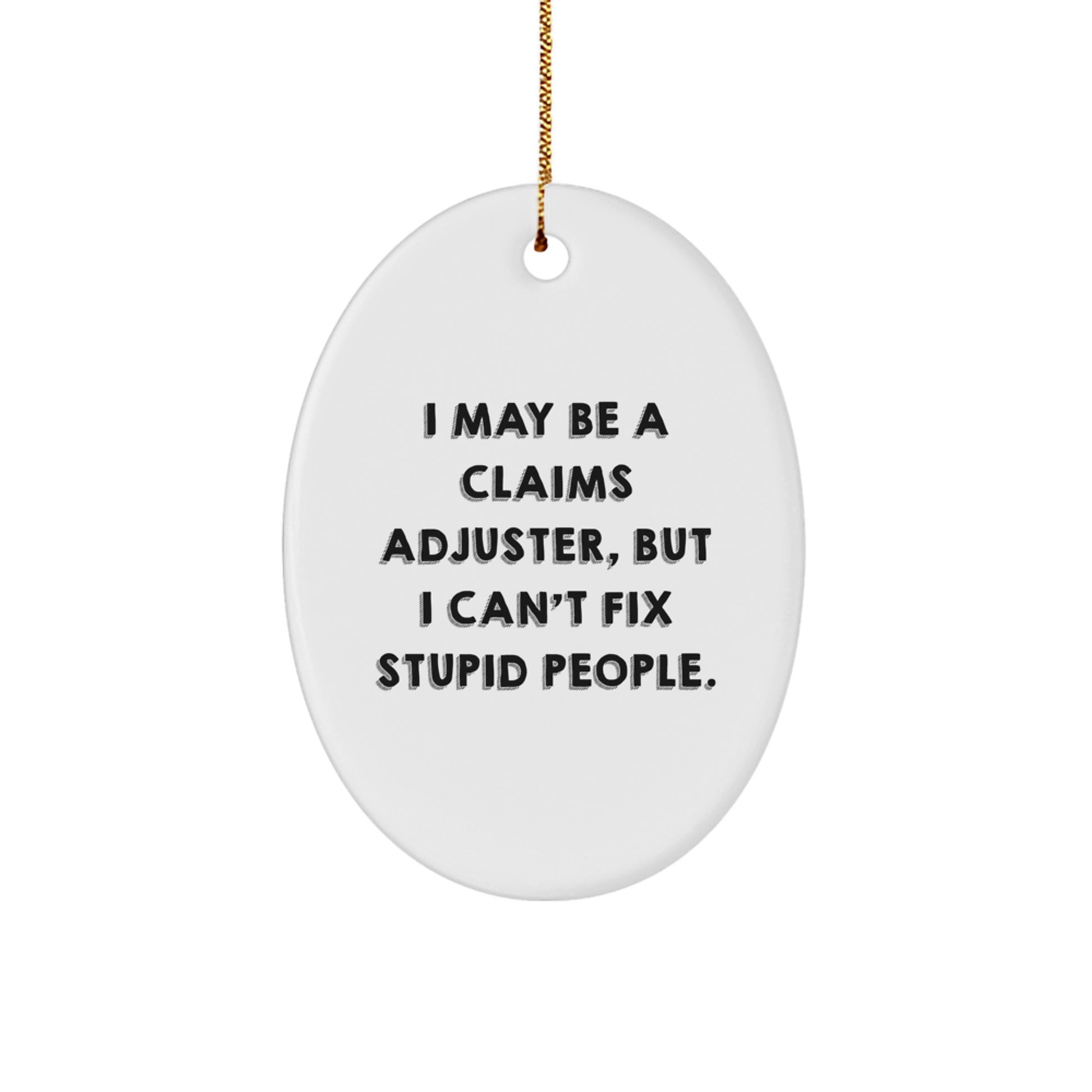 Claims Adjuster Oval Ornament Funny Quote Gifts for Men from Friends, 'I May Be A Claims Adjuster, But I Can't Fix Stupid People.' Christmas Unique Gifts