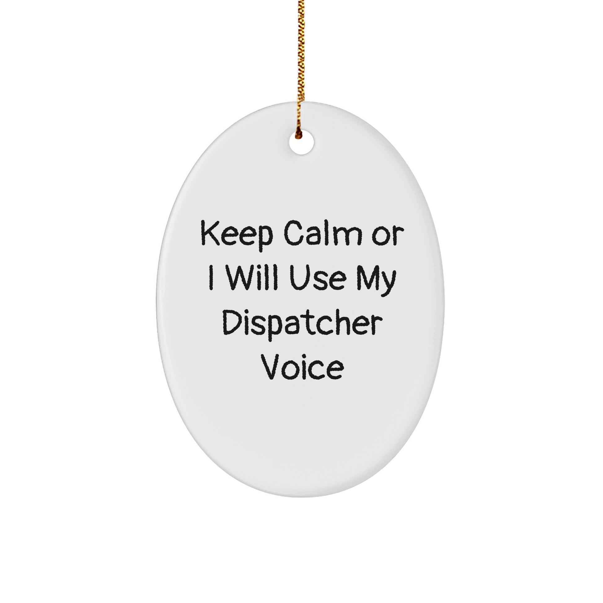 - Make this holiday season unforgettable with our unique Dispatcher Oval Ornament featuring the funny quote, 'Keep Calm Or I Will Use My Dispatcher Voice'. This gift is perfect for Dispatcher enthusiasts and anyone who appreciates a good sense of humor.