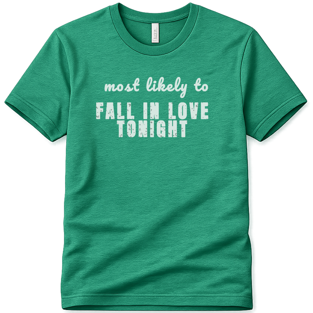 FALL IN LOVE TONIGHT SPT04 St Patricks Day Bachelorette Shirt, Funny Irish Party Tee, Most Likely to Shirt, Pub Crawl Outfit, Girls Night Out Tee