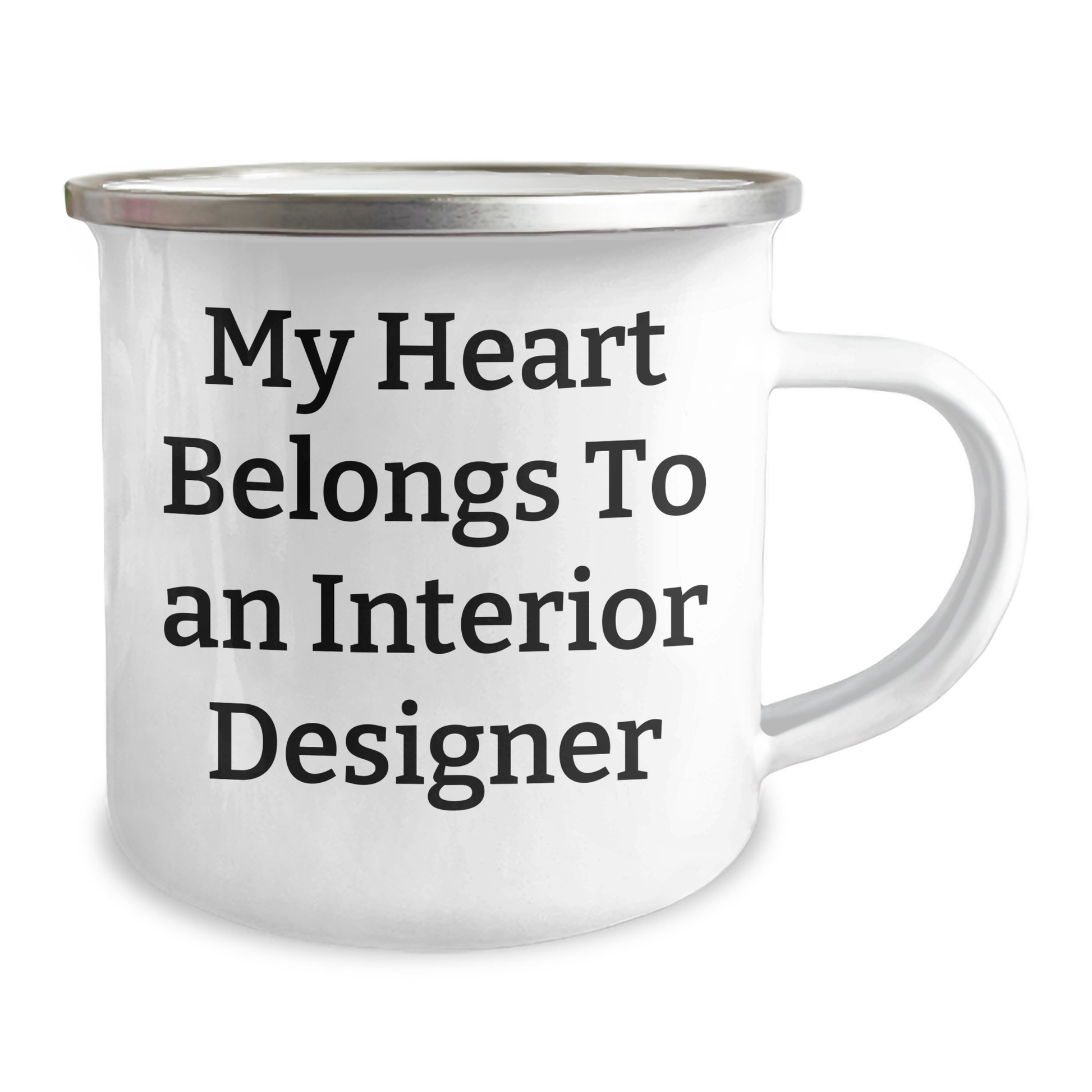 Funny Interior Designer Gifts, 'My Heart Belongs To An Interior Designer' Camping Mug, Unique Father's Day Unique Gifts from Men to Interior Designers