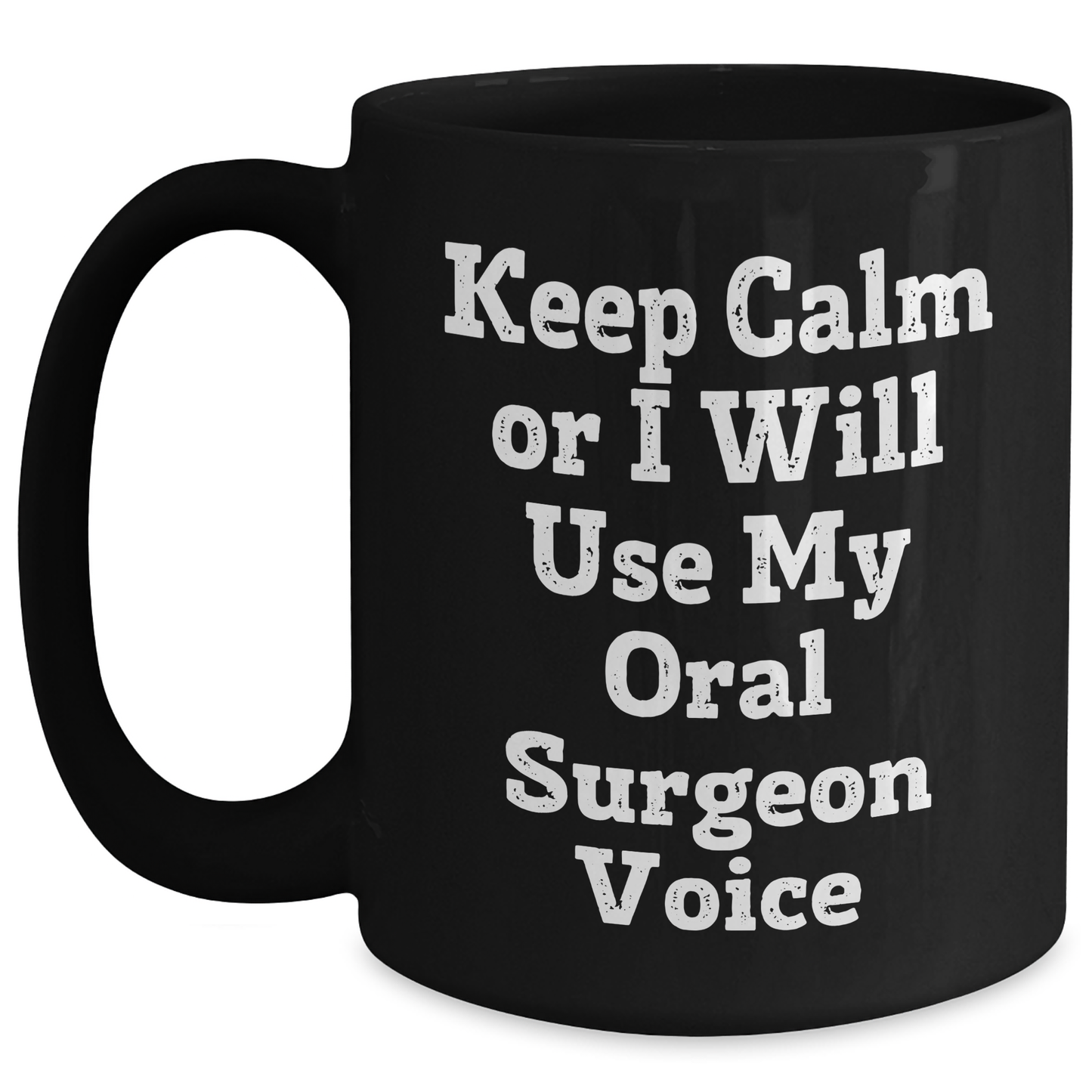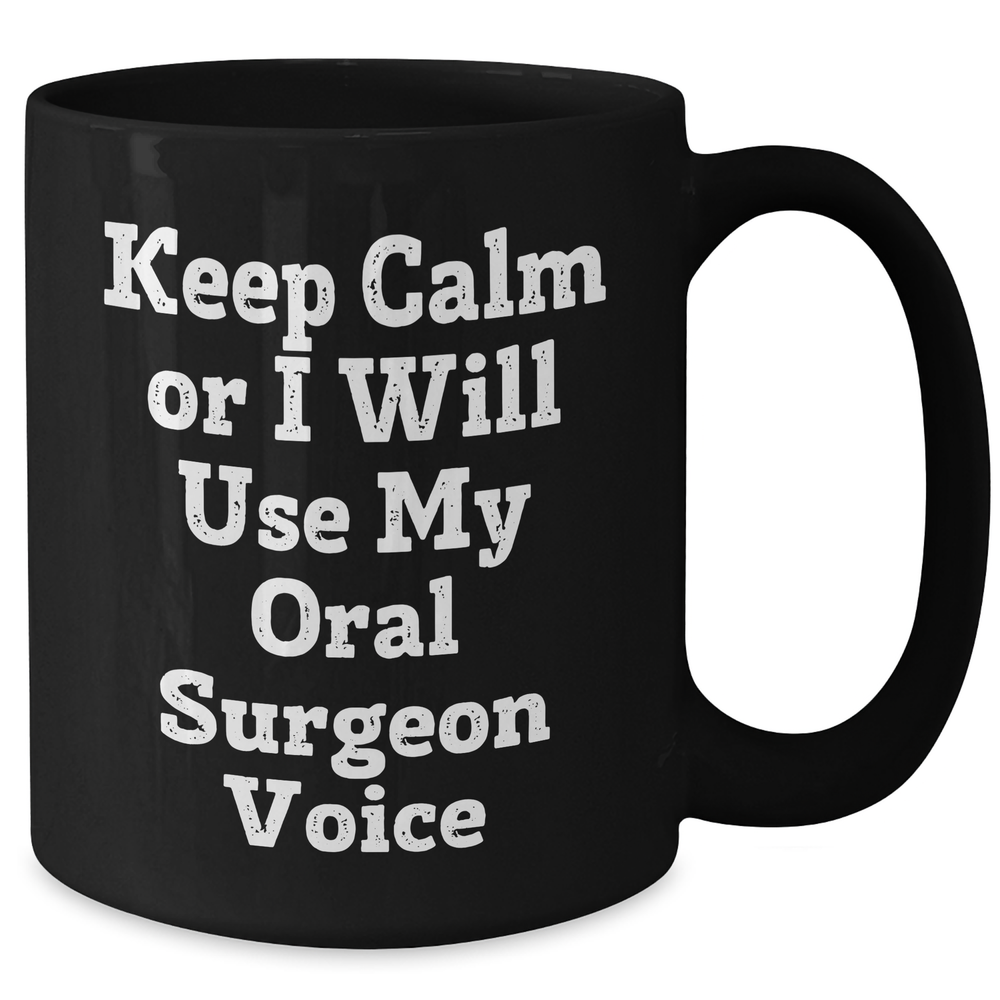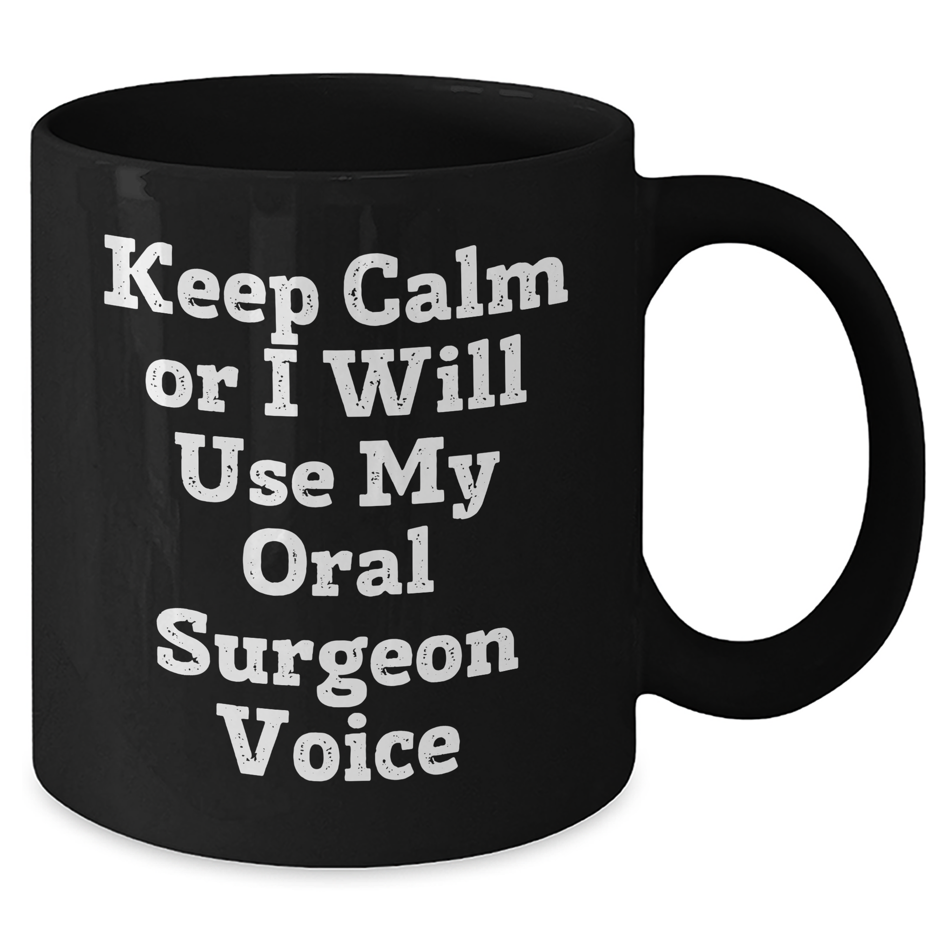 Funny Oral Surgeon Gifts from Friends - Keep Calm Or I Will Use My Oral Surgeon Voice Black Coffee Mug for Oral Surgeon Mother's Day Unique Gifts