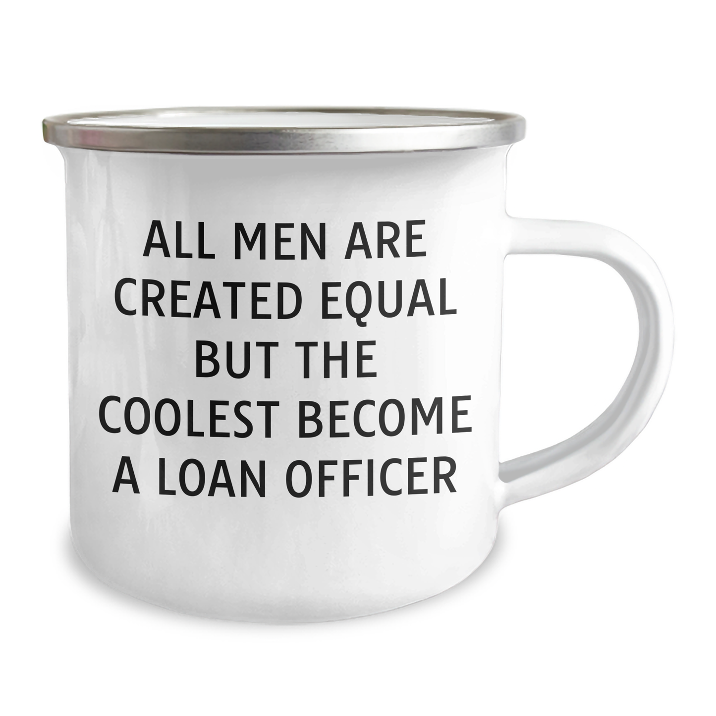 Are you looking for a unique gift for the Loan Officer in your life? Look no further! Our funny quote camping mug is the perfect way to celebrate their graduation and sense of humor. The quote 'All Men Are Created Equal But The Coolest Become A Loan Officer' is sure to bring a smile to their face. And with its 12 oz capacity and stainless steel with enamel finish, this mug is both functional and sturdy. Whether you're celebrating a milestone or just want to show your appreciation, this mug is the ideal gift. So why settle for a boring, run-of-the-mill gift when you can get something that really shows you care? Order this funny quote camping mug today and make the Loan Officer in your life feel special!