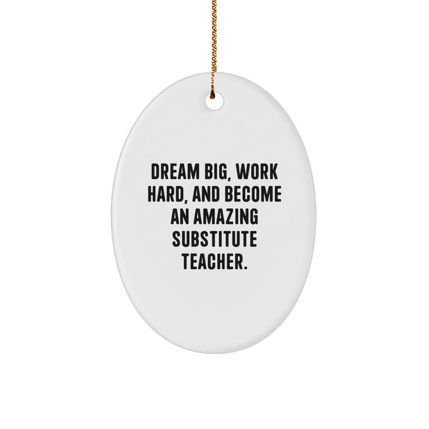 Inspiring Substitute Teacher Oval Ornament, Gifts from Men to Friends for Christmas, 'Dream Big, Work Hard, And Become An Amazing Substitute Teacher.'