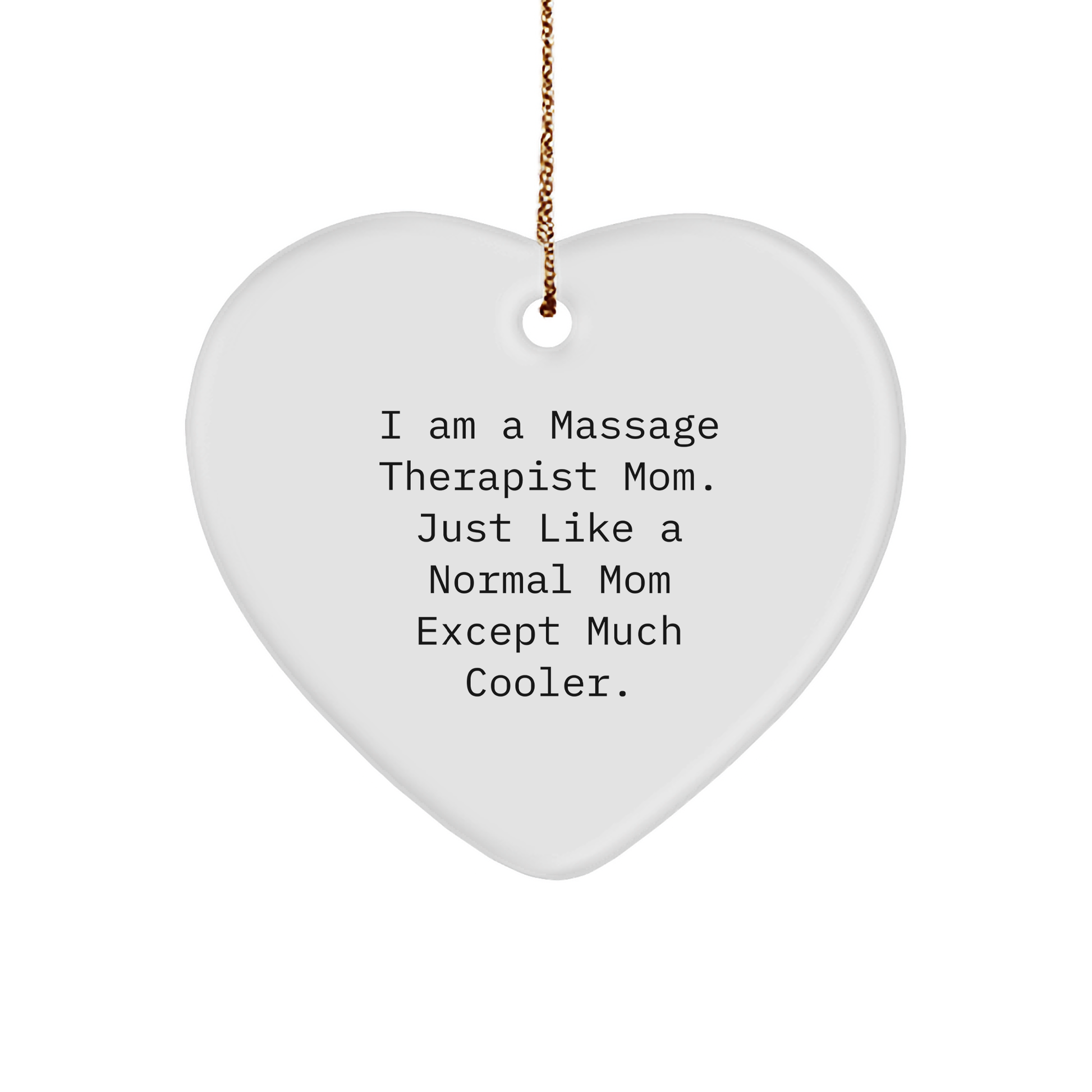 - With its 'I Am A Massage Therapist Mom. Just Like A Normal Mom Except Much Cooler.' quote, this heart-shaped ornament is the ideal gift for the massage therapist in your life. As a thoughtful present, it acknowledges their hard work and dedication to helping others feel relaxed and rejuvenated. Whether it's a Christmas gift or a way to show appreciation throughout the year, this sturdy MDF and high-gloss plastic finish heart ornament is sure to bring a smile to their face.