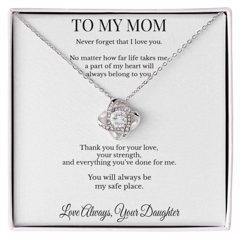 To My Mom – Never Forget That I Love You Personalized Love Knot Necklace | Made in USA Gift from Daughter