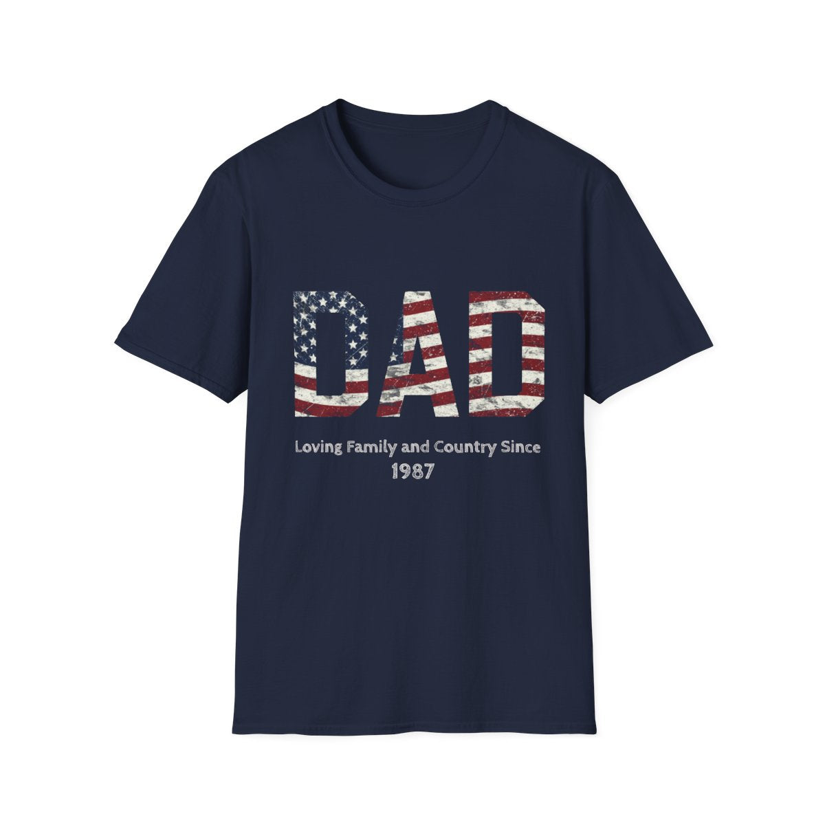 🔥 Whether he's serving his country or just serving up wisdom at the grill, give him a shirt that proudly says who he is: a DAD who loves his family and his country — since the year it all began.