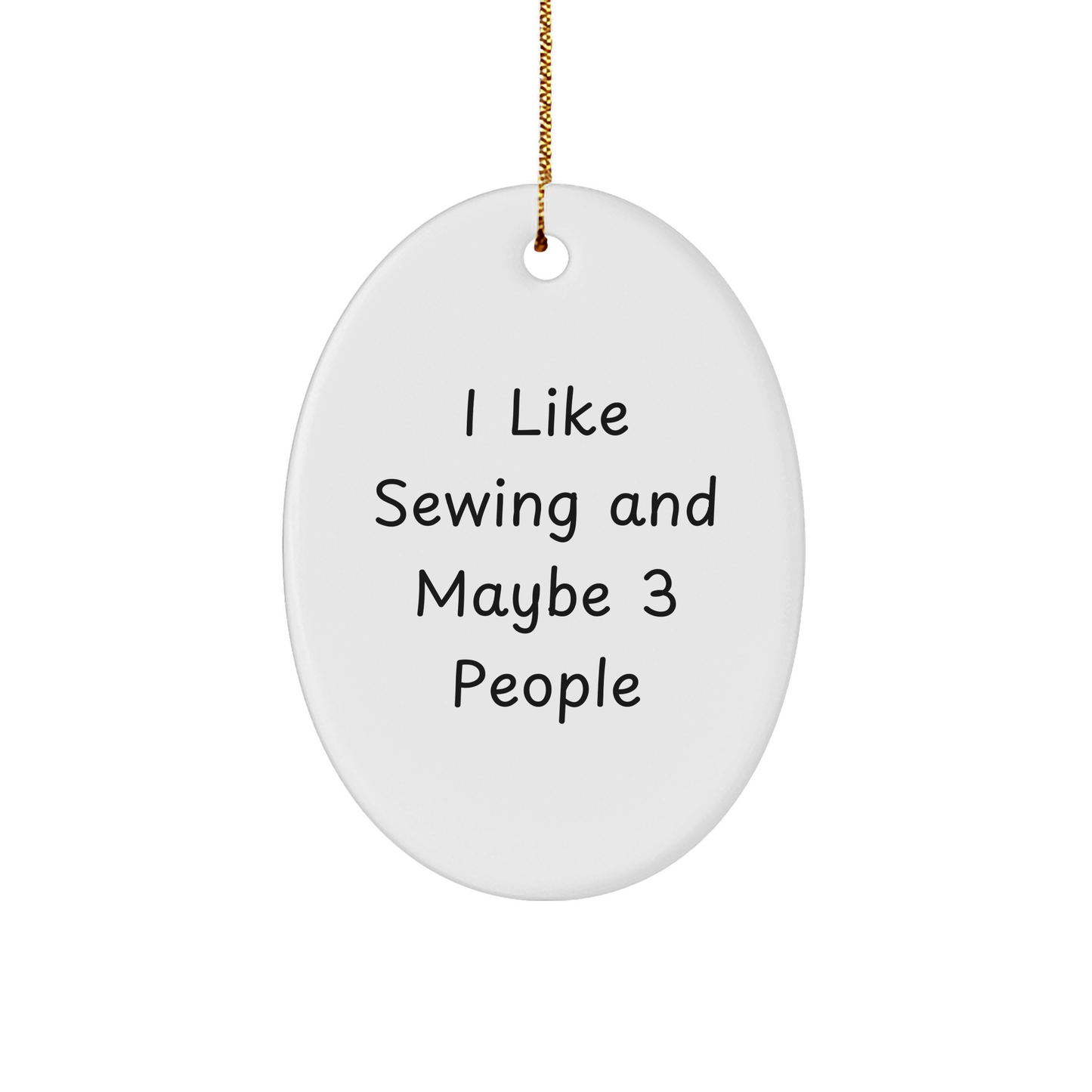 Sewing Gifts from Friends, Family, or Coworkers - Oval Ornament with Quote 'I Like Sewing And Maybe 3 People' - Christmas Unique Gifts for Sewing Enthusiasts